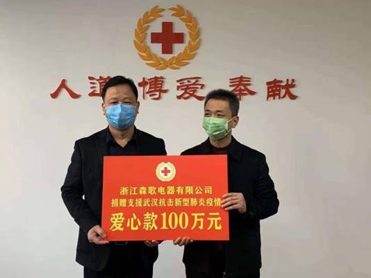 森歌董事長范德忠范總曾在《CCTV電影頻道與全國工商聯共同制作‘風雨無阻向前進’企業家系列公益短片》中講到:“國家繁榮富強,社會穩定團結,才有了今天良好的營商環境。我們都是新時代的受益者,疫情當前,我們當盡自己的責任這是一場看不見對手,自己與自己的戰斗。讓我們攜起手來,抱著必勝的信心,定能共度時艱。”范董所說的正是森歌所做的,在2020年“新冠”疫情初始,森歌在第一時間向嵊州紅十字會捐贈100萬人民幣馳援武漢,積極履行社會義務的同時,踐行社會責任。