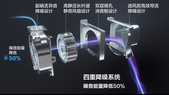 TCL空調的工程師團隊對整個風道流路做了技術創新優化,在進氣腔,采用創新的雙路導流設計,通過仿真找到一個最佳的進氣入流角,讓空氣流動的更順暢,可以減少空氣和風道腔體的碰撞;同時我們增加了雙層多孔吸音艙,聲音的能量在這些細微的孔中不斷地反射衰減耗散,以達到用戶對聲舒適的要求,噪音能量降低50%。
