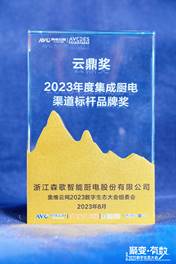 導讀: 8月24日,奧維云網2023數字生態大會在杭州召開。森歌作為廚電代表參會,會上頒布了智慧家居領域的權威獎項云鼎獎,憑借著數字領域的創新引領,森歌獲評四項大獎:范德忠董事長被評為2023年度集成廚電行業風云
