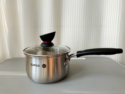 以蘇泊爾小紅圈不銹鋼奶鍋ET16ZBS01為例,蘇泊爾在鍋體上清晰地打出“316L”的字樣,讓消費者放心使用。鍋內在0.8L和1.2L處印有刻度,方便消費者了解用水量。鍋蓋為耐熱玻璃加不銹鋼包邊,堅固耐用。鋼鋁鋼三層加厚復合鍋底不易變形,磁力聚能環設計蓄熱更久,更耐用,適用燃氣灶、電磁爐、電陶爐、電爐等各種灶具。手柄復合人體工程學,握感舒適,隔熱防燙設計不滑手。不僅可以做嬰兒輔食,就是成人熱牛奶、煮面、煲湯也方便快捷。