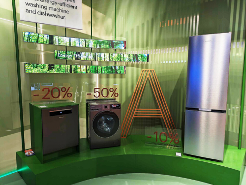 產品約 28%(重量)的組成部分使用的是可回收材料。該產品具有洗衣液自動投放功能,與基礎產品相比,其生命周期內的碳足跡減少了 32%。