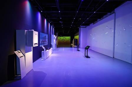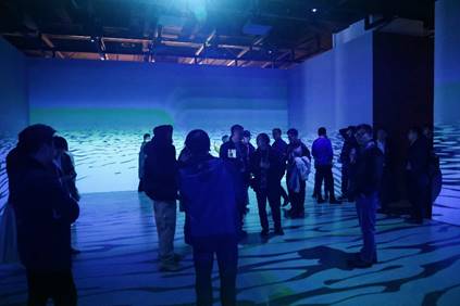 而本次家電藝術展大量運用了傳統文化符號,諸如國畫、景石、花鳥、山水、花傘等,這些靜態的藝術品在數字科技的加持下重新“活”起來,展現出靈動的生機。以“天水如一”這組畫面為例,其創作靈感取自南宋畫家馬遠的經典作品《水圖》,輔以數字化動態呈現,在三維的空間中完美復刻了水紋形態的演繹,讓人仿佛置身平湖波間,呈現出恢弘大氣、天人合一的感官盛宴。