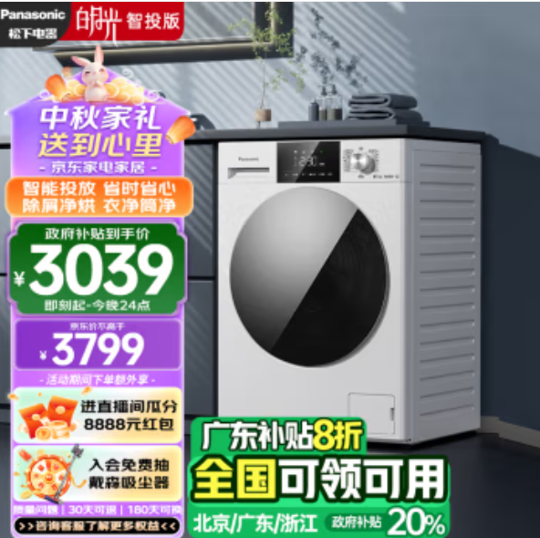 值得一提的還有,松下在中國入鄉隨俗,其產品價格并非高不可攀。如筆者選擇的松下超薄全嵌洗烘一體機XQG100-810DF不僅有過濾除毛功能,還有智能投放、煥新空氣洗(祛味)、熱風除菌、筒潔凈、清屑潔筒等功能,能效比更是高達一級。而在以舊換新補貼之后,只要3000元就可買到,這價位和一些國產同類產品不相上下。