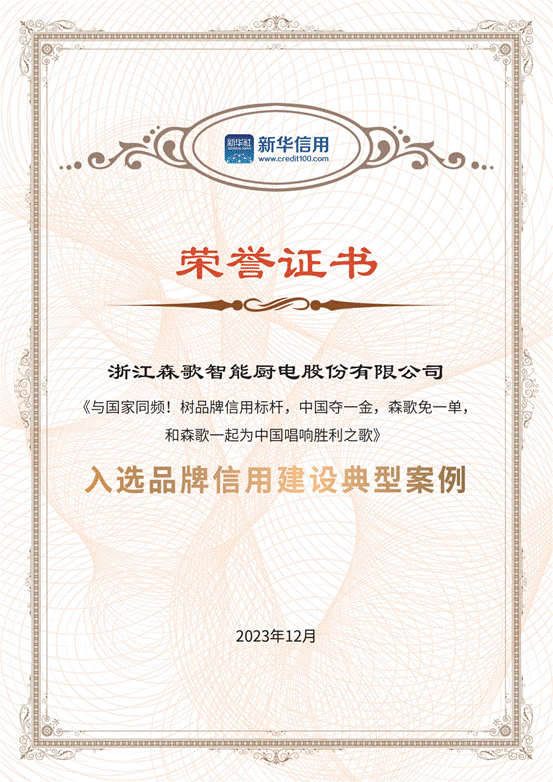 具體來說,4月,獲得國家市場監督管理總局頒發的“集成灶行業質量示范品牌”榮譽;5月,在第七個中國品牌日上,作為行業唯一代表,榮獲“2023年家居新國貨品牌指數研究高質量發展標桿企業”和“2023年家居新國貨集成灶行業領軍品牌”兩項證書,并憑借卓越的產品力將“2023年家居國貨之光”獎杯收入囊中;6月,中國建材質量強國行走進森歌;到了年末,又被中國建筑材料流通協授予“2023年促家居消費優秀實踐案例”,同時在中國企業家博鰲論壇上,以行業唯一代表入選“品牌信用建設典型案例”。