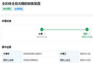 兩年之后,根據(jù)天眼查APP顯示的信息,在去年光峰科技已經(jīng)獲得了全彩體全息光波導(dǎo)技術(shù)的專利。