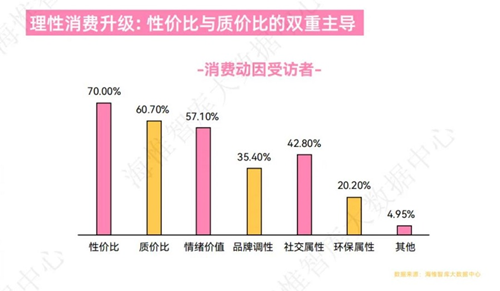 海惟智庫的《2025年輕人生活方式洞察報告》指出,70%的年輕人將性價比視為首要考量,60.7%關(guān)注質(zhì)價比,這標志著“價格敏感+品質(zhì)苛求”的復(fù)合型消費觀已成主流。他們不再被動接受品牌灌輸,而是主動出擊,用“火眼金睛”對比參數(shù)、深挖體驗,實質(zhì)上已參與到產(chǎn)品價值的定義之中。