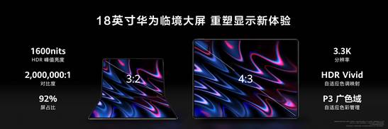 HUAWEI MateBook Fold非凡大師通過業(yè)界領(lǐng)先的折疊屏技術(shù)和輕量化工藝,打造目前全球最大商用18英寸折疊電腦,展開時僅7.3mm,重量僅1.16kg,整機折疊后小于13英寸,可輕松裝入隨行商務(wù)提包,帶來筆記本電腦超便攜體驗。除了便攜的機身,HUAWEI MateBook Fold 非凡大師更是帶來18英寸沉浸式大屏,并通過3.3K高分辨率、1600nits峰值亮度等,為用戶帶來更真實、清晰、觀感舒適的折疊屏視覺巔峰體驗。