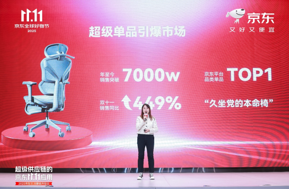 京東零售自有品牌相關負責人介紹,京東京造與國內超70%產業帶展開合作,推動嘉瑞福等外貿代工企業成功開拓內銷市場,建立開放協同的產業生態。京東京造與嘉瑞福共創的Z9Pro人體工學椅雙十一期間成交金額接近一千萬,同比超五倍,用戶好評率達99%以上。