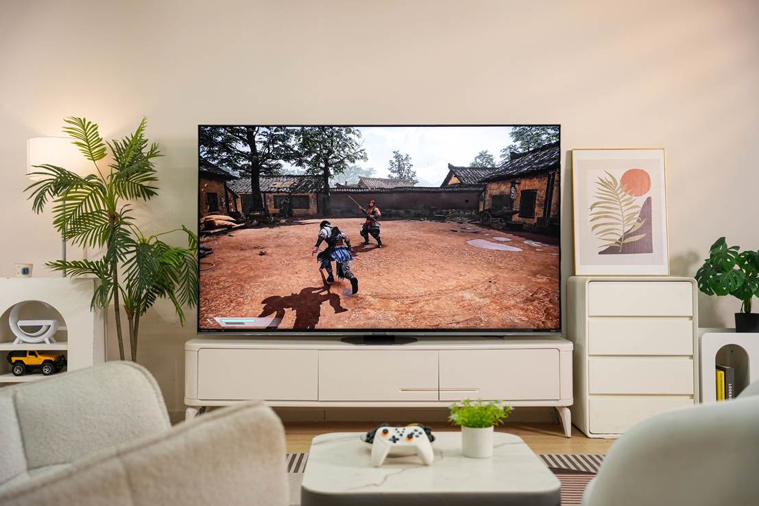 不止影視作品,多款優秀國產3A游戲也擅長“用色彩講故事”。海信RGB-Mini LED電視通過搭載獨家定制的黑曜屏Ultra,實現了“極黑極透”的深邃視效,配合信芯AI畫質芯片H7的智能調控,暗場黑位精準、細節拉滿媲美OLED,搭配4K 170Hz原生高刷,無論是高速運動賽事的流暢跟拍,還是3A游戲的毫秒級響應,都能做到絲滑無拖影、動態無模糊。值得一提的是,海信全新推出的RGB-Mini LED電視“影游機皇”E8S Pro,為影游發燒友帶來SUPER電影模式、雙杜比解碼、語音啟動游戲機、行業最強游戲妙控臺等12項極致影游功能,既極致還原自然真實色彩,還能將看大片、玩游戲的氛圍瞬間拉到頂點,F場,夏振東老師表示想買100吋大屏電視時,海信E8S Pro也是第一時間成為推薦的首選機型。