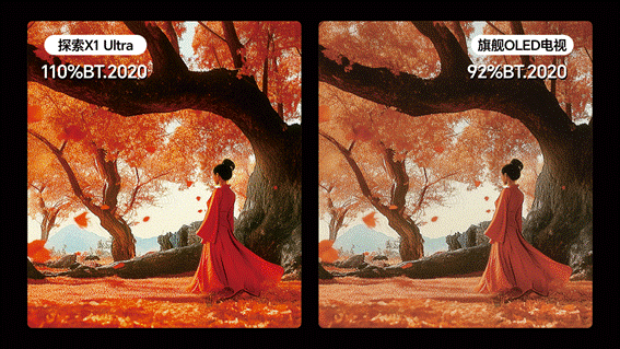 探索X1 Ultra擁有行業(yè)最高110% BT.2020電影工業(yè)級色域,色準E<0.6,這一能力不僅滿足高端家用戶的觀影需求,更可精準適配設(shè)計師在色彩敏感型項目中的專業(yè)訴求,確保設(shè)計意圖得到完美呈現(xiàn)。