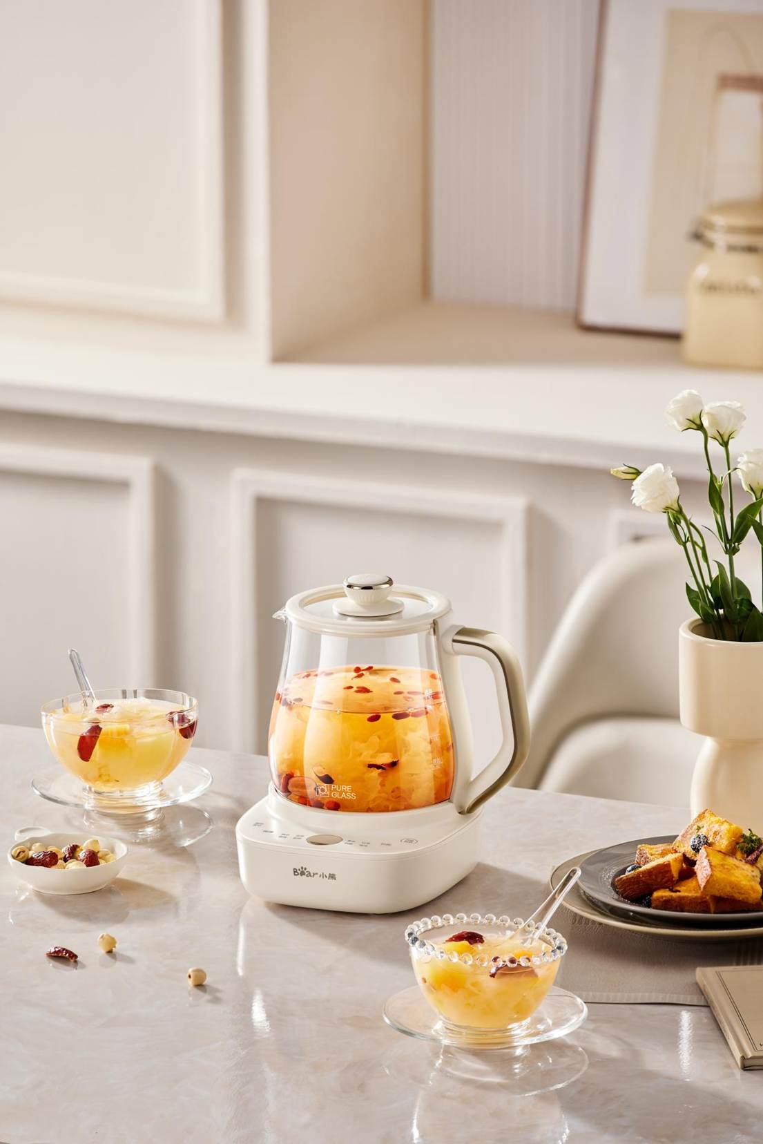 早晨到工位后放入幾片黃芪枸杞,按下開關,整理郵件的時間,茶香已裊裊升起;午后小憩前燉份冰糖雪梨,睡醒后溫度恰好,滋潤又提神。更貼心的是,它還搭載了NTC水溫水位雙檢測系統(tǒng),不僅能防止沸騰溢出,還能精準控溫鎖住營養(yǎng),更好地釋放食材風味。