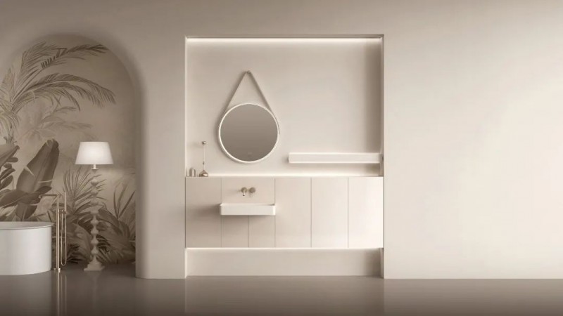 于適宜維度,星縵浴室柜踐行“少即是多”的空間法則,以超窄結構主柜釋放呼吸感,輕薄外觀卻不損滿足大容量收納的實用內涵,感應氛圍燈隨靠近優雅亮起,柜內更內置發光背板,取物一目了然,于實用與美學間尋得精準平衡,呼應高凈值群體“少而精”的長期主義價值觀。