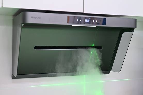 IQV采用的是高風(fēng)速、兩兩對(duì)轉(zhuǎn)氣旋和推挽氣簾三種氣流組合技術(shù),在高風(fēng)速下,炒菜飄出的油煙會(huì)被快速帶走,這是油煙機(jī)的核心能力。