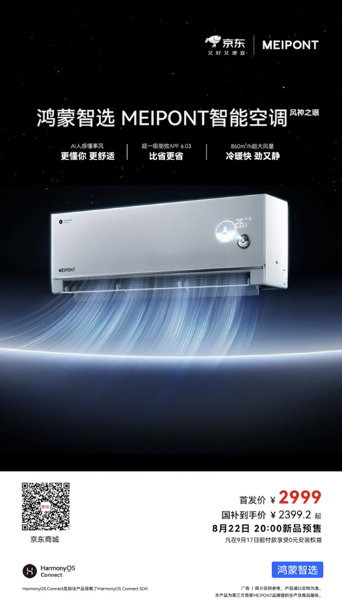 京東全球獨家首發鴻蒙智選MEIPONT智能空調 下單享多重新品權益