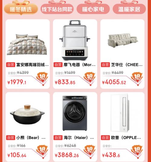 歲末煥新正當(dāng)時(shí),家的美好未來(lái)已來(lái)。12月11日晚8點(diǎn)鎖定京東,爆款家電家居低至1折,機(jī)會(huì)不容錯(cuò)過(guò),一站式升級(jí)你的理想生活。現(xiàn)在就打開京東APP搜索“冬家好物”“天天搶五折”,提前鎖定心儀好物,給家一個(gè)更溫暖的冬天。