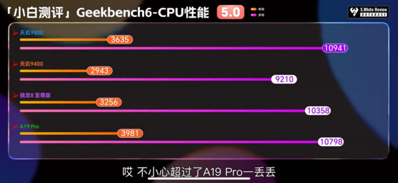 誒呀,天璣9500的多核跑分一不小心超過了A19 Pro一丟丟。
