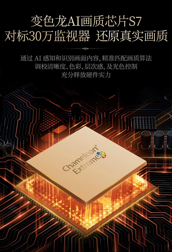 強(qiáng)大的硬件,需要一顆智慧的“大腦”來驅(qū)動(dòng)。創(chuàng)維變色龍AI畫質(zhì)芯片S7擁有全行業(yè)最高的2.5T綜合AI算力,并集成了多項(xiàng)AI能力,能夠精準(zhǔn)識(shí)別與智能調(diào)校。它能通過AI感知和識(shí)別畫面內(nèi)容,無論是電影、劇集還是體育賽事,都能精準(zhǔn)匹配最優(yōu)畫質(zhì)算法,對清晰度、色彩、層次感及光色控制進(jìn)行全面優(yōu)化,從而充分釋放硬件的全部潛能。
