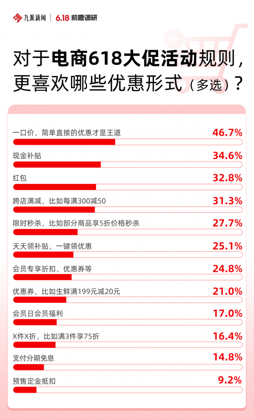 導讀: 近日,為了感知、解讀消費需求、消費觀念及購物偏好,九派新聞展開了一次618大促前瞻調研,共計收回3000份調研問卷。調研結果顯示,有45%的受訪者認為,復雜的優惠規則讓人看不明白,促銷玩法背后全是套路;4...