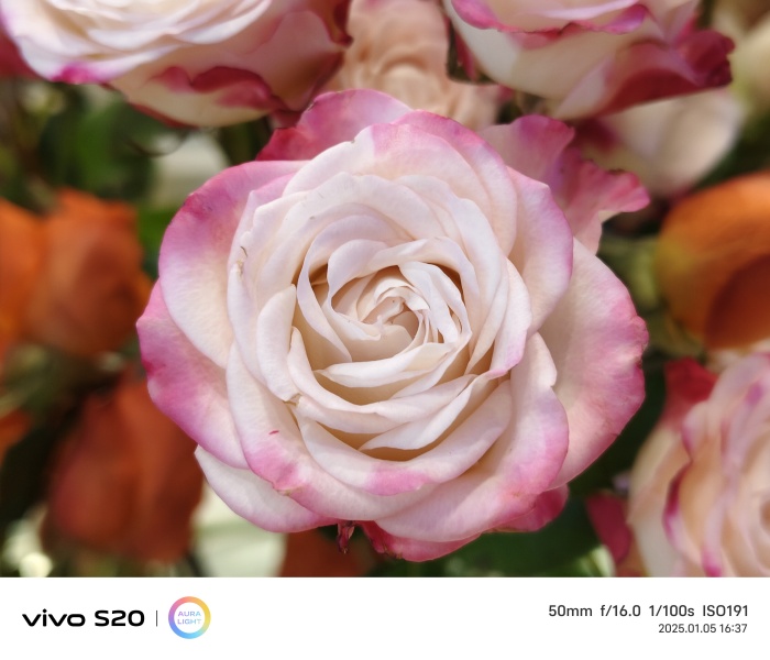vivo S系列自問世,就是以人像“攝影之王”進行定位的輕旗艦產(chǎn)品,深受年輕用戶尤其是年輕女性的喜愛。而vivo S20系列更是注入了AI能力,帶來了全新的拍攝體驗。在前置部分,vivo S20配備了5000萬像素三星JN1傳感器,且具備防畸變柔光自拍功能,支持0.8x至2X自由變焦。無論是想要拍攝精致的特寫還是隨手拍景,都能秒出片,顏色不失真,成像效果好,局部細節(jié)也能拍照的很清晰。