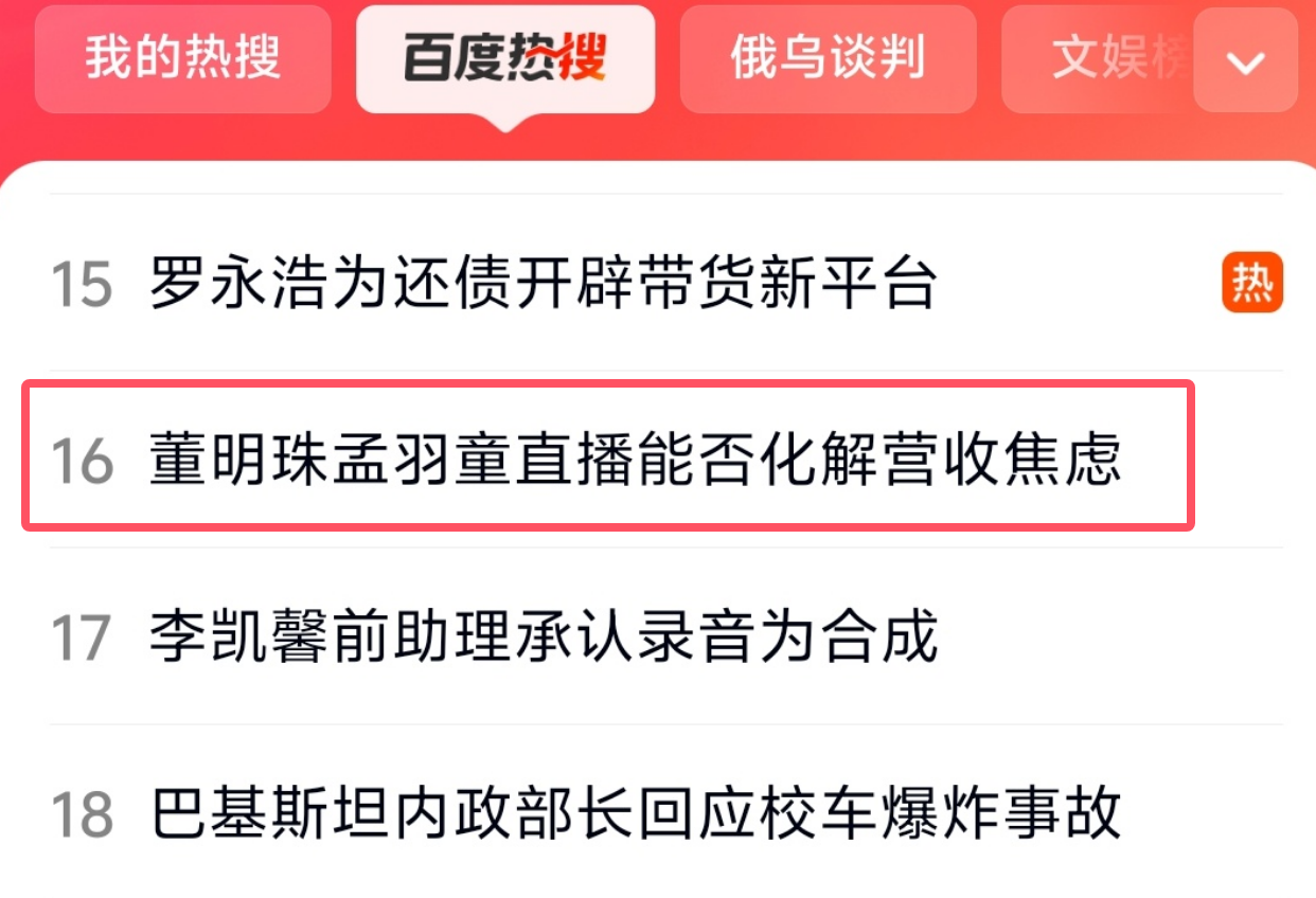 “董明珠孟羽童直播能否化解營收焦慮”沖上百度熱搜 網友:沒啥用