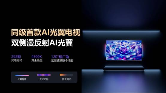 與此同時(shí),長(zhǎng)虹還帶來額線上渠道的新品,行業(yè)同層級(jí)首款 AI光翼電視--D7H Ultra。除了有0距離貼墻設(shè)計(jì)、288Hz超高刷新率、30大AI智能體、開機(jī)無廣告、NAS觀影等優(yōu)勢(shì),并擁有1120個(gè)全維分區(qū)、3000nits峰值亮度,滿足用戶對(duì)畫質(zhì)與性能的極致追求外,還采用與京東方深度定制的黑晶廣角無影屏,并搭載6大控光黑科技,包括復(fù)合銀離子基座、雙驅(qū)16晶聚光芯片、藍(lán)寶石晶底等,D7H Ultra實(shí)現(xiàn)背光反射率提升47%、發(fā)光效率提升33%、光暈減少25%。
