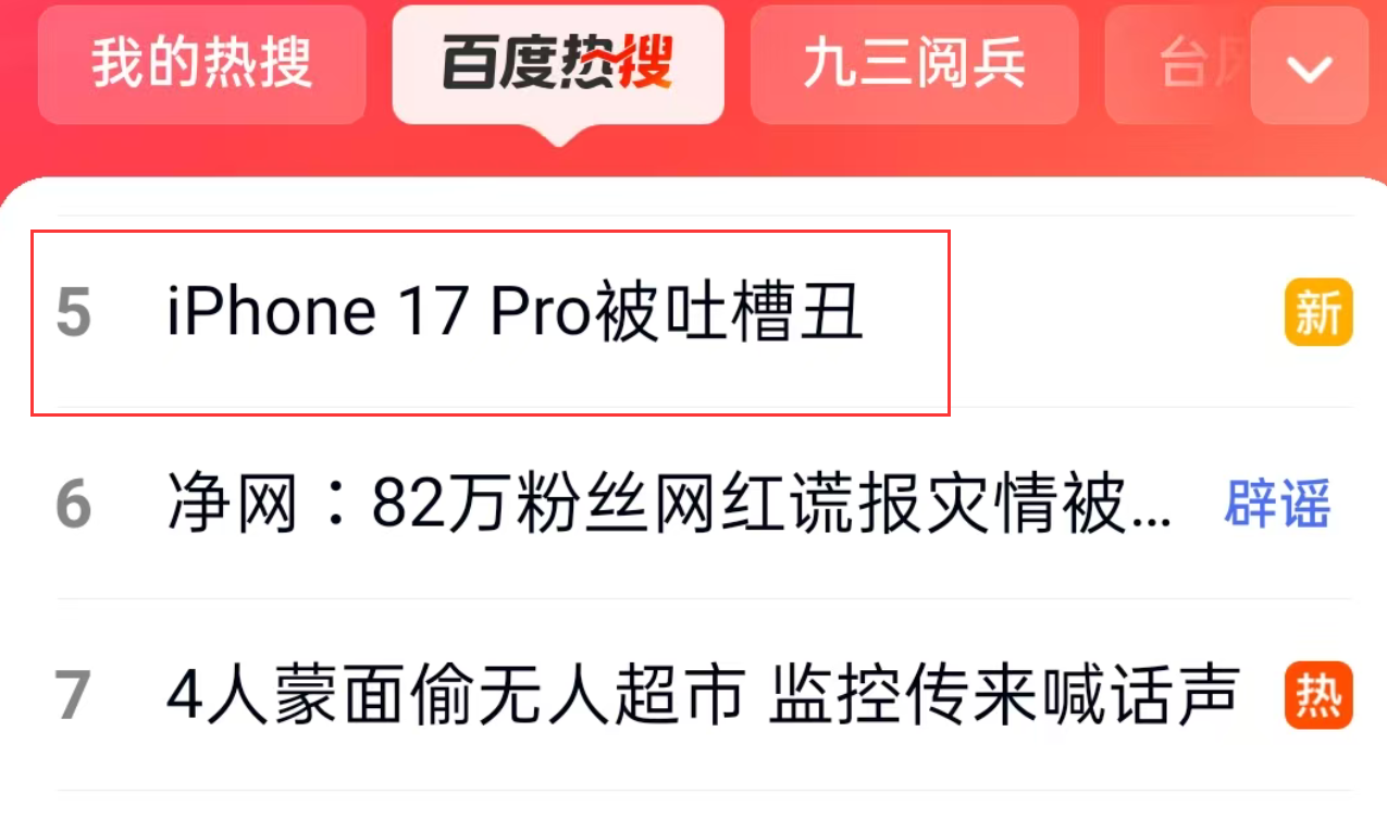 “iPhone 17 Pro被吐槽丑”沖上百度熱搜