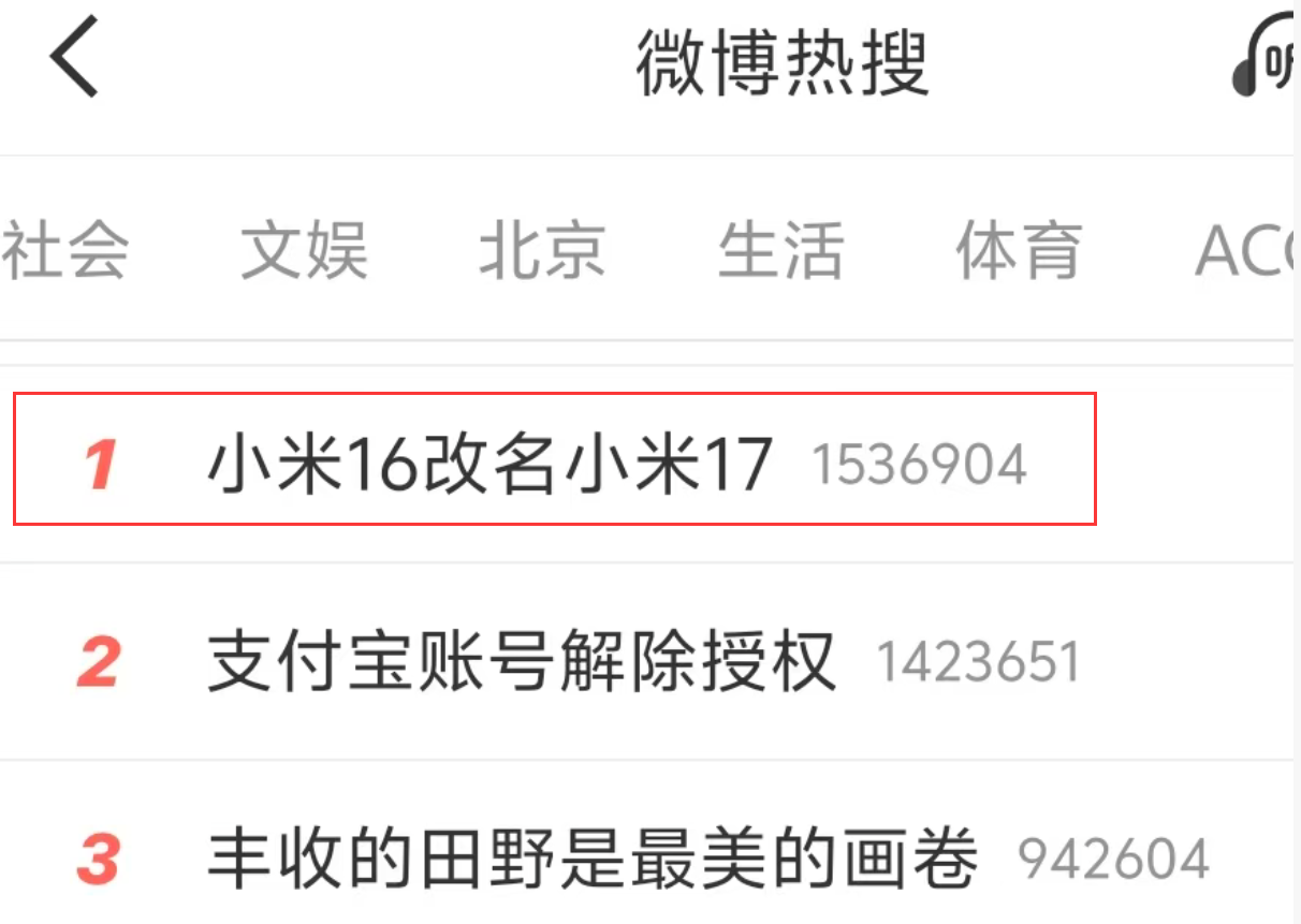 家電消費網9月15日訊 今天,“小米16改名小米17”沖上微博熱搜第一條。