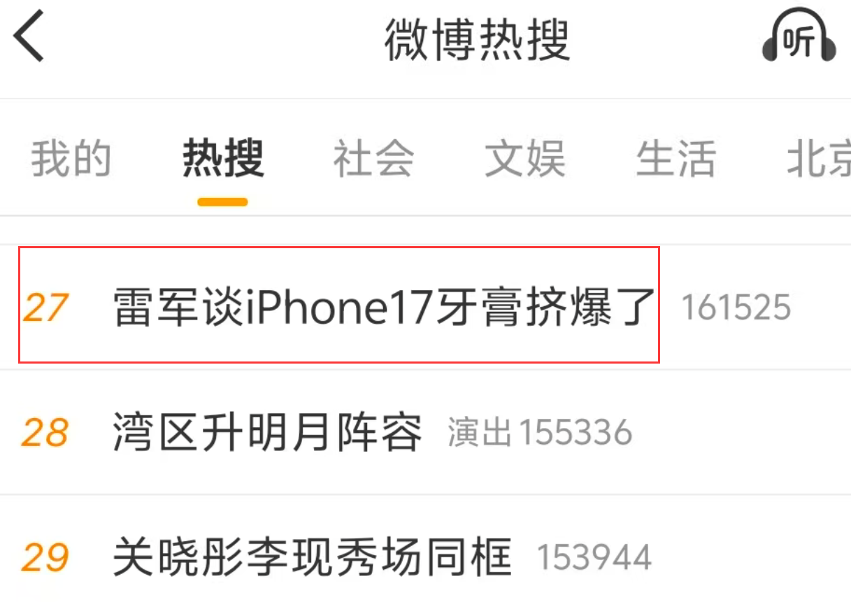 “雷軍談iPhone17牙膏擠爆了”沖上熱搜