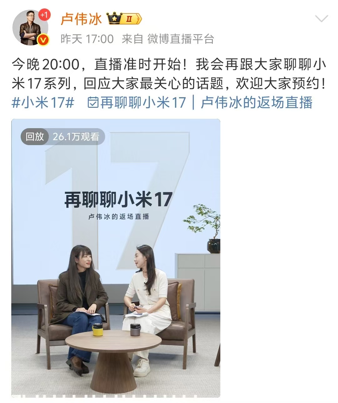昨天晚間8點,小米盧偉冰準時開啟了小米17返場直播。表示將加大研發背屏設計的投入,迎來一系列有趣的更新,還透露即將推出Redmi K90 Pro Max。