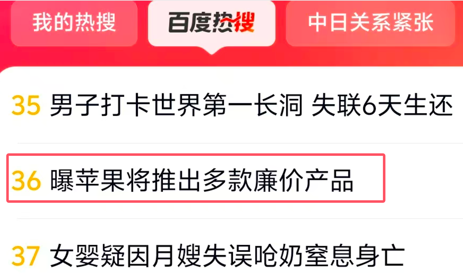 “曝蘋果將推出多款廉價產品”沖上百度熱搜