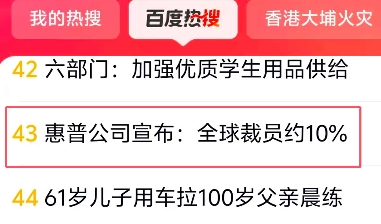 - “惠普公司宣布:全球裁員約10%”沖上百度熱搜: