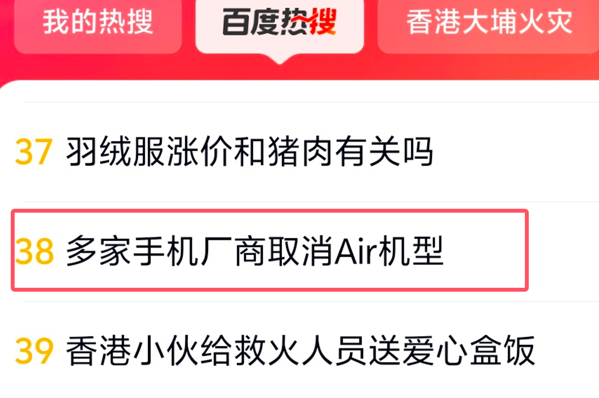 家電消費網11月27日訊 今天,“多家手機廠商取消Air機型”沖上百度熱搜。