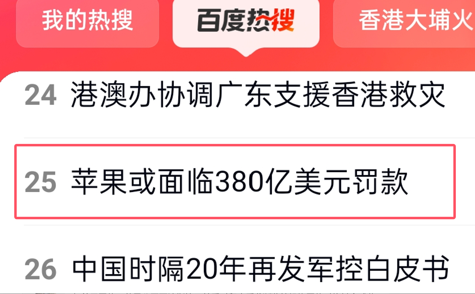 “蘋果霍面臨380億美元罰款”沖上百度熱搜