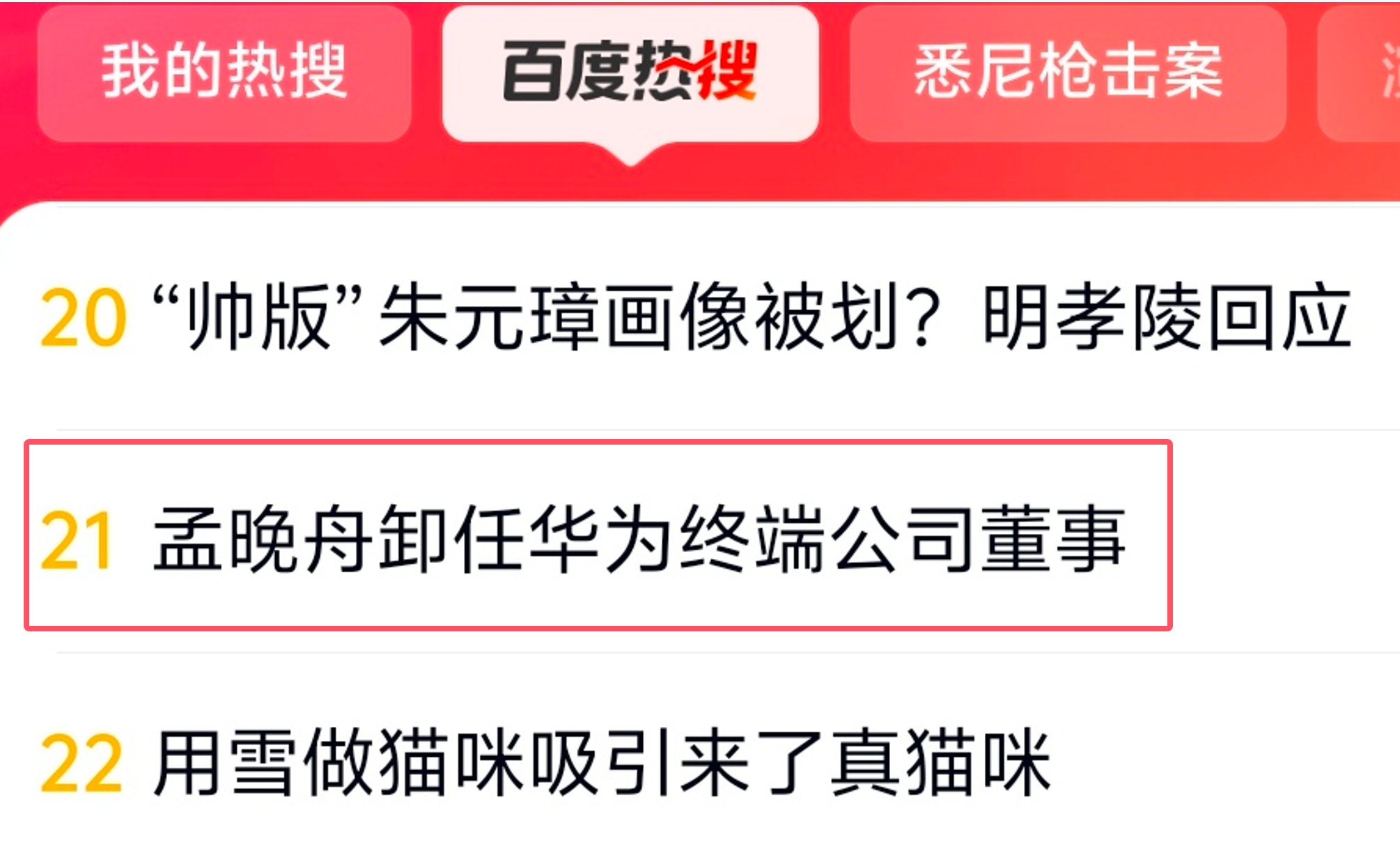 “孟晚舟卸任華為終端公司董事”沖上百度熱搜