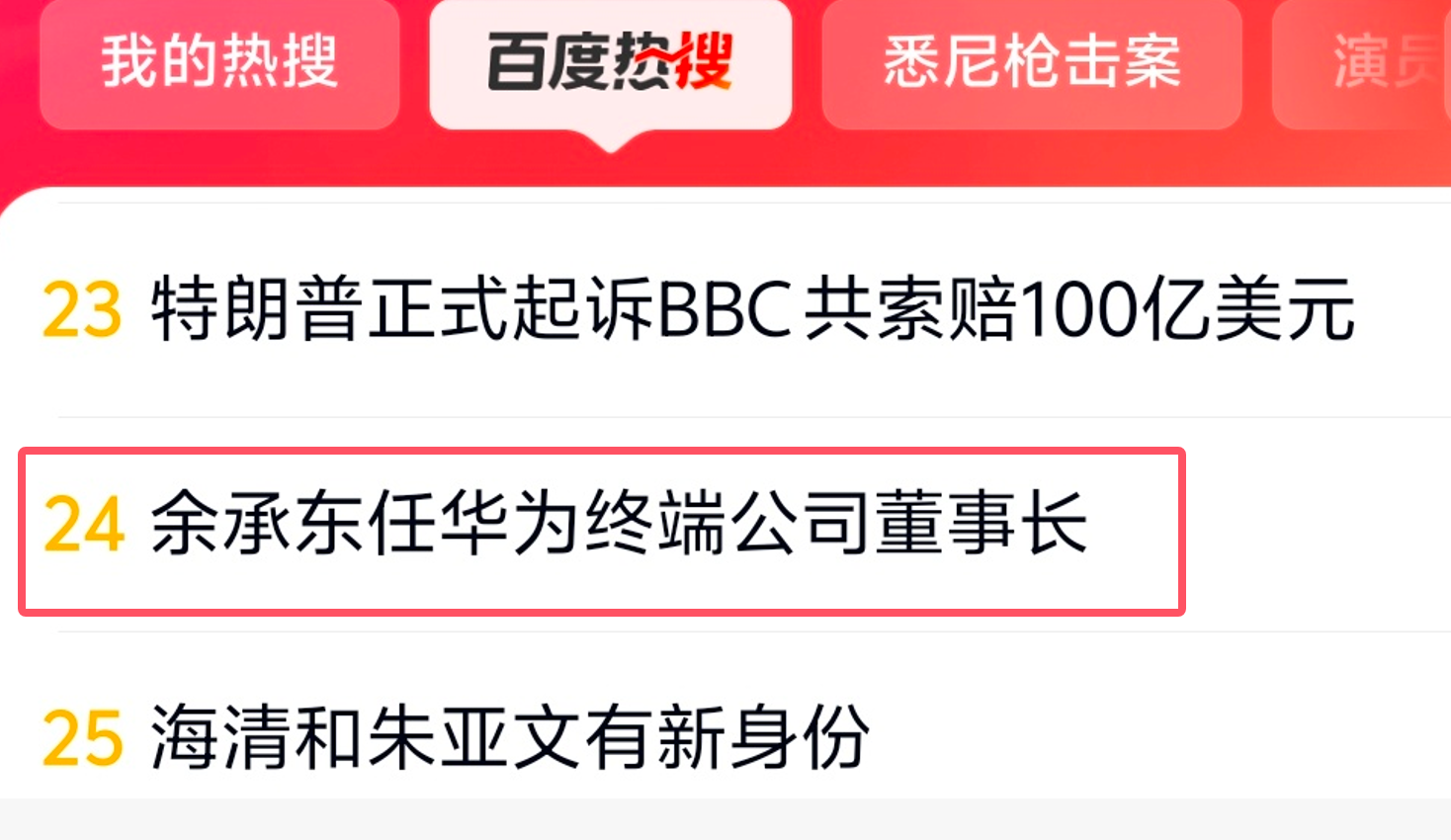 - “余承東任華為終端公司董事長(zhǎng)”沖上百度熱搜