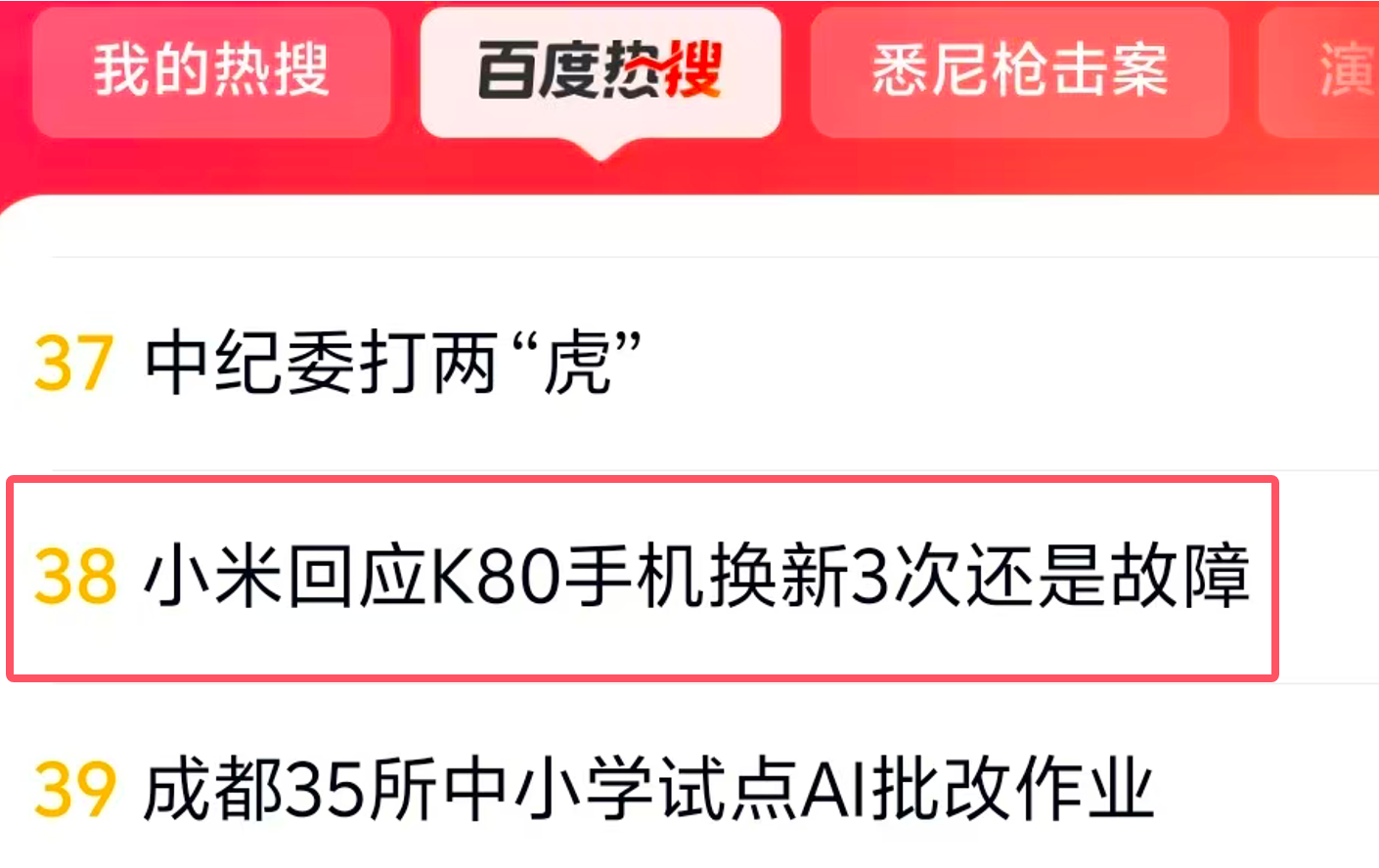 家電消費網12月16日訊 今天,“小米回應K80手機換新3次還是故障”沖上百度熱搜。
