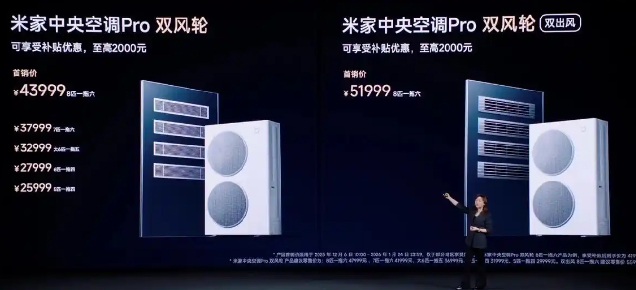 米家中央空調Pro系列“雙風輪”發布 2.5999萬起售