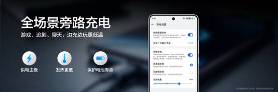 在充電體驗(yàn)上,本次還帶來(lái)了改變用機(jī)習(xí)慣的黑科技——全場(chǎng)景旁路充電。在邊玩邊充基礎(chǔ)上,全面優(yōu)化追劇、導(dǎo)航等場(chǎng)景體驗(yàn),邊用邊充不發(fā)燙,有效保護(hù)電池壽命,并支持多適配器快充協(xié)議。