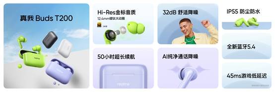 此次發(fā)布會(huì)還帶來(lái)了真我TWS新品——真我Buds T200。作為百元級(jí)市場(chǎng)的“越級(jí)”之作,真我Buds T200搭載12.4mm鍍鈦大動(dòng)圈,錄音室級(jí)超高清音質(zhì)通過(guò)了Hi-Res小金標(biāo)認(rèn)證,并升級(jí)支持32dB靜謐降噪,提供50小時(shí)超長(zhǎng)續(xù)航。全新的金屬質(zhì)感工藝,帶來(lái)高端視覺(jué)和觸覺(jué)體驗(yàn)。真我Buds T200起售價(jià)129元,今天正式開(kāi)售。