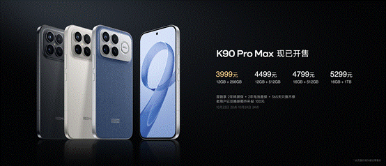 售價方面,K90 Pro Max 12GB+256GB 版本售價3999元,12GB+512GB版本售價4499元,16GB+512GB版本售價4799元,16GB+1TB版本售價5299元,K90 Pro Max冠軍版16GB+1TB版本售價5499元;K90 12GB+256GB 版本售價2599元,16GB+256GB版本售價2899元,12GB+512GB版本售價3199元,16GB+512GB版本售價3499元,16GB+1TB版本售價3999元,發布后即刻開售,歡迎大家選購。