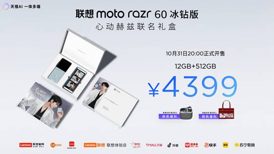 聯想moto razr 60心動赫茲聯名禮盒售價4399元,購買心動赫茲禮盒的用戶即有機會獲得“赫你相遇”限定禮袋,禮袋含張凌赫獨家寫真透卡、定制款痛包,以及豐富的限定周邊。