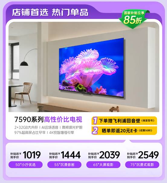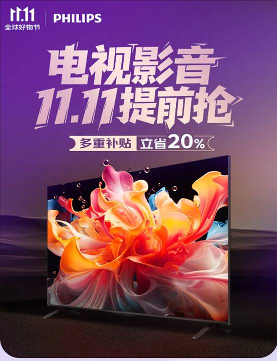 飛利浦電視雙11提前搶!至高20%國家補貼+多重好禮相贈