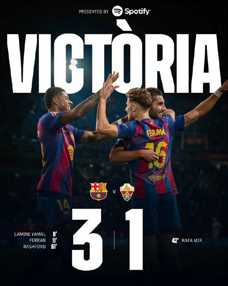 西甲:巴薩3-1埃爾切