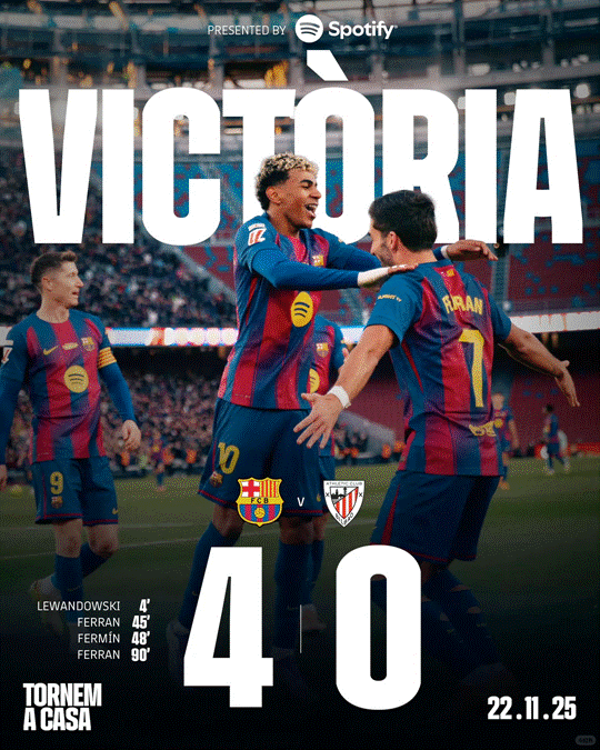 西甲:巴薩4-0畢爾巴鄂競技