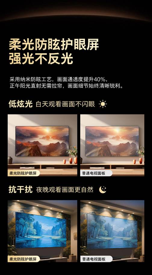 對于家庭觀影而言,尺寸決定沉浸感的上限。飛利浦100MLED901采用百吋巨幕,屏幕超2.2米面寬,1:1還原影院級臨場感,人物躍出屏幕、山河撲面而來;采用納米防眩工藝,畫面通透度提升40%,無論白天夜晚,畫面細節始終清晰銳利;憑借無邊全面屏瞬間填滿客廳視野,無論是全家圍坐觀看大片,還是與朋友聚會暢玩游戲,都能讓人仿佛置身場景之中。