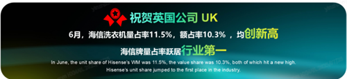 海信洗衣機在全球高端市場的成功,離不開其全球化戰略的深入推進。目前,海信洗衣機已經暢銷全球140多個國家,歐洲市場表現尤為亮眼,今年6月份在英國市場占有率突破11%,躍居行業第一;在克羅地亞、塞爾維亞等市場更是突破30%的占有率,保持高速增長態勢。