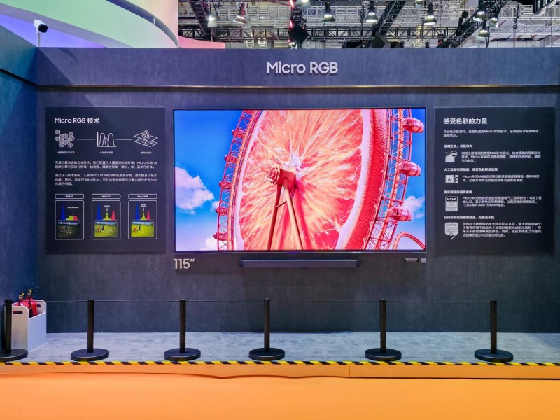 前瞻性的Vision AI解決方案引領電視行業進入主動服務的智能新時代,而高端顯示產品則是三星卓越的技術名片。此次展出的MICRO LED與Micro RGB構筑起三星在超高端顯示領域的技術護城河。144英寸與114英寸三星MICRO LED以磅礴尺寸與震撼視效吸引了眾多參展觀眾駐足,依托先進的MICRO AI處理器,能夠實時分析畫面內容并進行精準優化,數千萬個自發光RGB LED芯片帶來2000nit的峰值亮度,三星獨家研發的玻璃基板技術可實現更精準的電子控制,實現更高的像素密度和更快的響應速度。115英寸三星全球首款Micro RGB同樣實力非凡。其采用自研的Micro RGB技術,以突破性的微米級RGB LED背光技術重新定義顯示技術邊界,81Bit色彩映射技術與100%BT.2020標準色域覆蓋使該產品榮獲彩通(PANTONE)色彩認證與德國VDE頒發“Micro RGB 精準色彩”認證的雙重權威認可,為全球顯示產業標定了兼具技術高度與市場價值的發展新航向。