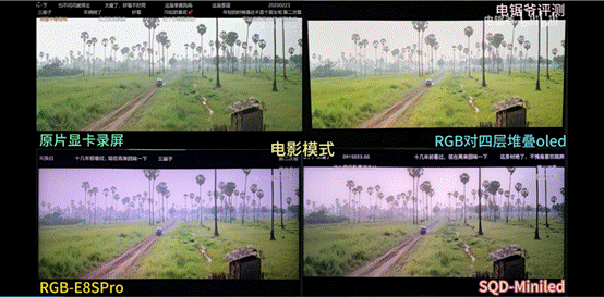 近兩年國產Mini LED技術取得長足進步,不僅畫質水準足以媲美OLED,在硬件層面更是以更好的穩定性對易燒屏、壽命短的OLED形成血脈壓制。在Mini LED陣營里,RGB-Mini LED與SQD-Mini LED也是采取了不同的發展路線,最顯著的是控色表現。RGB-Mini LED每個燈珠都能按需發出對應顏色光譜,在源頭處就能發出圖像想呈現的顏色光譜,屬于液晶顯示的最新代技術。SQD-Mini LED(超級量子點)仍是采用單色光源進行二次轉換(或單色光源堆疊)的傳統顯示模式,只能控光卻不能控色。