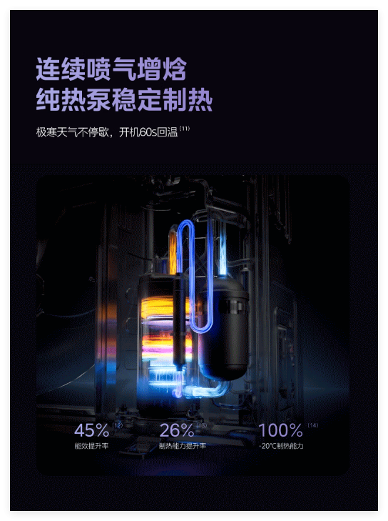 作為僅次于“三巨頭”的品牌,華凌空調始終走在行業前沿,以華凌神機二代Ultra掛機為例,其創新搭載雙出風連續噴氣增焓技術,這個原本是萬元級中央空調才有的配置,被華凌空調直接“下放”,再加之大雙排冷凝器、雙排蒸發器、大直徑風輪、電子膨脹閥的應用,使其制熱性能大幅提升26%,天氣再冷也不停歇,-20℃制熱能力高達100%,開機60S就能回溫,堪稱極寒氣候下的優選制熱神機。以此來看,華凌空調在漠河的適應能力,可能是“小菜一碟”。