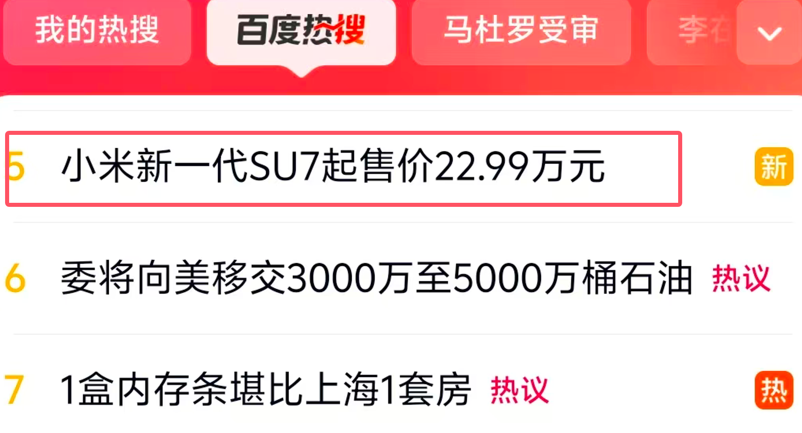 - “小米新一代SU7起售價22.99元”沖上百度熱搜